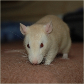 | Poznámka: Lahťáček je geniální potkan. Je veliký, má krásnou hlavu (aby ne po rodině šampionů), je hrozně kontaktní, ale přitom není hyperaktivní. Stavbou těla z něj bude dokonalý potkan. Má trochu méně výraznou barvu a světlejší oči než bych si přála. Brouček by měl také nést geny "b" a "r". Ve věku 2,5 měsíců váží 377g :-), 507g (27.01.09) Výstavy: budou, zkusíme zabodovat stavbou :o) Odchovy: ještě mladý, ale budou Krytí: Zatím ne. |