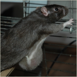 | Poznámka: Roční Koketku jsem si přivezla od kamarádky z VŠ. Hrozinka tenkrát zůstala ze dne na den sama a potřebovala jsem pro ni kámošku, nějakou klidnější a nejlepší volbou se mi zdála samička, která měla svoje chovná léta za sebou, než nějaké pobrkané mládě ukvapeného výběru. Evča nemohla téměř dýchat kdykoli Koketce měnila ubikaci nebo se s ní mazlila, tak jsem si ji prostě vzala. Koketka je děsný lidumil, běhá k lidem, očmuchává je a spinká u lidí. Je to hodně vertikální potkanka. Neběhá po zemi ale zkouší třetí rozměr, takže kdykoli je puštěná, lítají věci z poliček, skříní. Barvu a znaky komentovat asi nemusím, je to typický mazlík :-) Černá s prostříbřením, berkshire ehm :-) Zdraví: Ve 22 měsících začal Koketce růst nádor pod přední tlapkou. Zároveň jsme v tu dobu léčili svrab, ke kterému je Koketka neuvěřitelně náchylná. Zabrala až druhá injekce Ivomecu, přitom její spolubydlící neměla ani stopu po svrabu. První dva týdny jsem nádor nechala být a čekala, co z toho vyleze. Přeci jen téměř dvouletý potkan nereaguje na anestezii tak jak bychom rádi. Nádor rostl celkem rychle a po konzultaci s veterinářkou jsme od operace ustoupili. V prosinci 08 je nádor velký asi jako větší kiwi. Potkanka je veselá, čilá, žravá. Jakmile jedno z toho přestane, přistoupím určitě k šetrné anestezii, protože si zaslouží umřít důstojně. Fotka je aktuální, ze dne 23.11.08. V prosinci 2008 druhý nádor, tentokrát z epitelu močové trubice, který "vyhřezl" ven. Nádorově změněný epitel nebyl schopný odolávat kyselé moči, začala se porušovat jeho stěna, proto euthanasie. Koketka byla do poslední chvíle čilá, akční, milá, žravá .. Výstavy: - Odchovy: - |