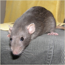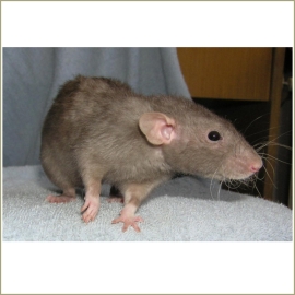 Poznámka: Otimee do Čech přivezla Marina už těhotnou. Čekala jsem, že dospělá potkanka z velkého chovu bude tak trochu samorost, ale Otimee dokázala naprostý opak. Mohu s klidným svědomím říct, že tak miloučká líbací potkanka nebyla ani Karamelka. Otimee spinkala u lidí, olizovala donekonečna ruce, tulila se ve vlasech, olizovala rty, přiběhla jako první na zavolání, prostě neuvěřitelný potkanmazel :-)) Miminka po ní byla neuvěřitelně veliká. Výstavy: - "G" z Myshakova - 26.5.2005 Zdraví: Otimee nikdy nestonala, a pak poprvé a naposled :-( Asi týden nebo 14 dní i přes antibiotika pořád kašlala a vrkala. A pak jsem ji našla ráno v kleci mrtvou stulenou v klubíčku :´-( |
